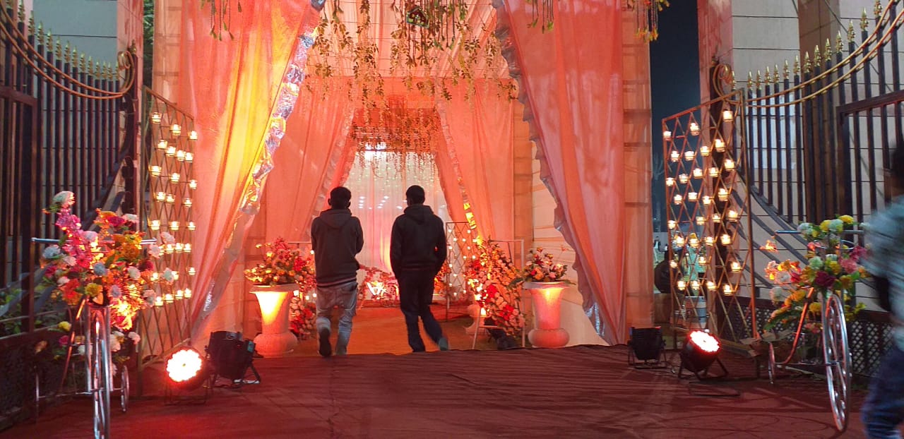 The most beautiful thing about this venue apart from its royal and heritage look is, the passage from the main gate leading to the entry is illuminated in such an extravagant manner that it makes the earth meet the sky, and the feel of waliking pass that passage with your betrothed, in that feeling of togetherness is unparalleled. Thanks for the most special wedding gift. With lots of love